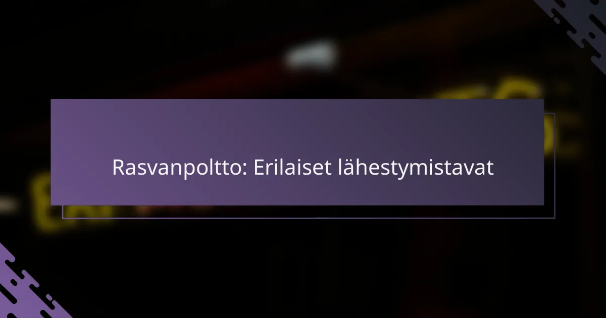 Rasvanpolttoon on useita ravintostrategioita, jotka voivat auttaa saavuttamaan tavoitteet tehokkaasti. Näitä strategioita ovat muun muassa keto-ruokavalio, intermittent fasting, vähähiilihydraattiset ruokavaliot ja ravintolisät.