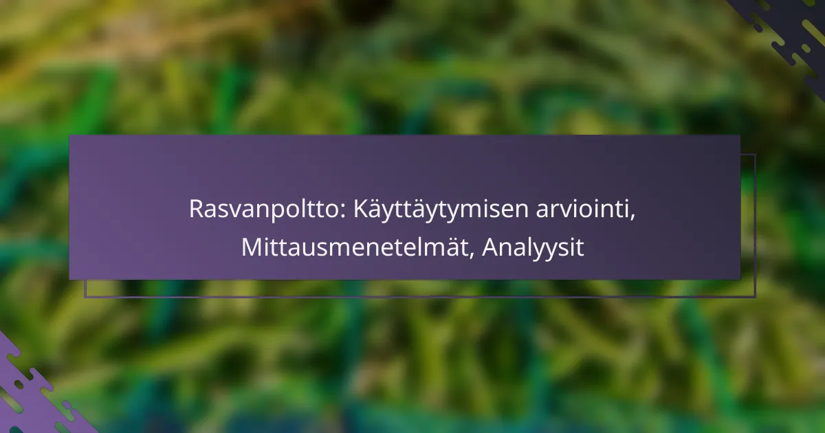 Rasvanpoltto on kehon kyky hyödyntää rasvaa energianlähteenä, mikä on tärkeä osa painonhallintaa ja terveyttä. Käyttäytymisen arviointi keskittyy elämäntapatekijöihin, ruokavalioon ja[…]